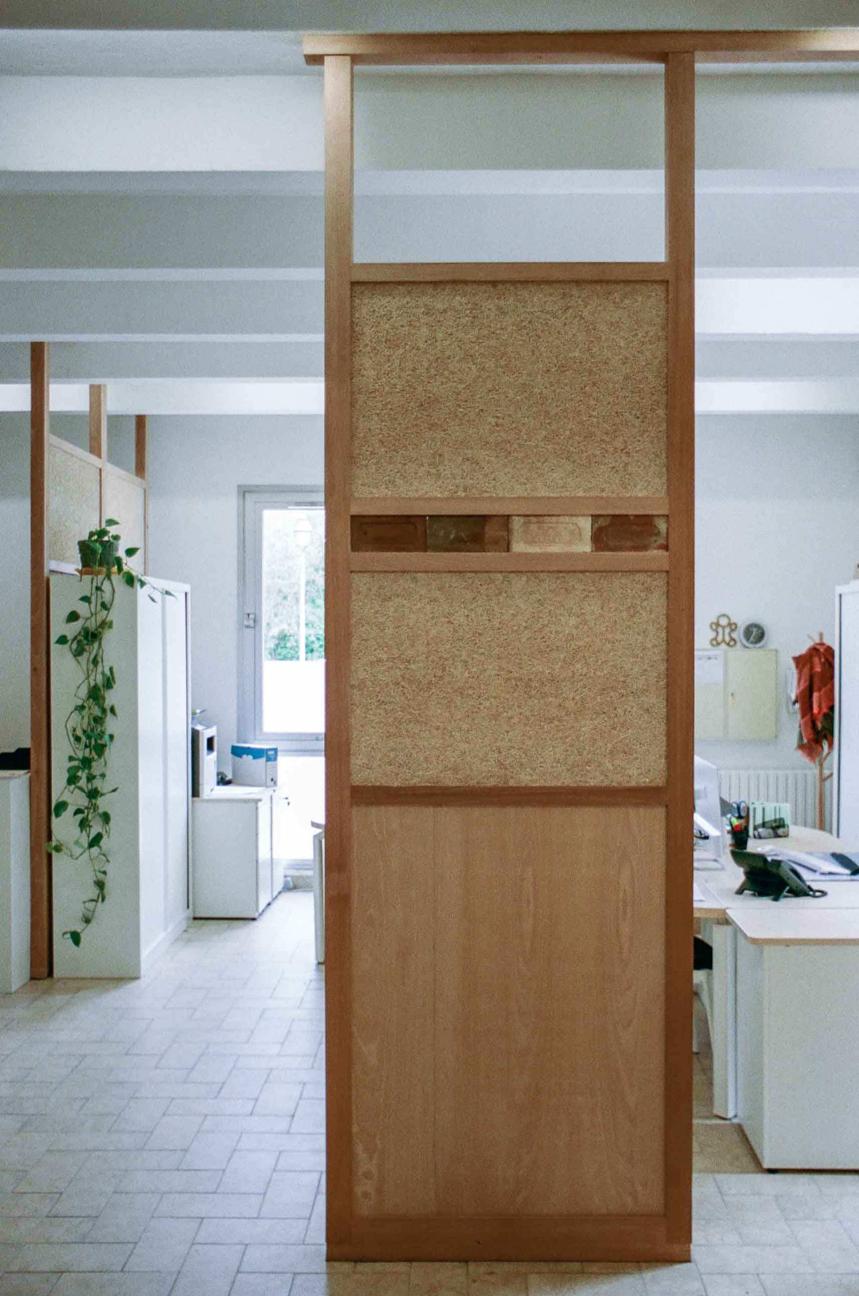 Enfin, la dimension pédagogique et collective est au cœur du projet. La cloison a été construite lors d'un chantier de formation de neuf jours, encadré par un maçon professionnel, réunissant riverains et architectes en reconversion. Cette expérience a permis la transmission de savoir-faire bas carbone, tout en renforçant l'appropriation du lieu et le lien entre architecture, territoire et habitants.